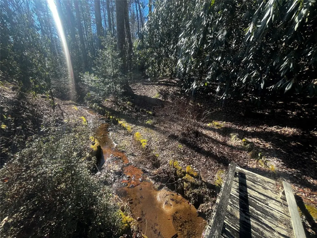 Serene, peaceful, creek-front retreat. Look for the American flags to see the front property line. Imagine building your mountain dream home and sitting out back overlooking the creek while you listen to the soothing sound of the water... There is a flat space to this lot to accomodate a home site. Expired 3 bedroom septic on file. Minimum sq. foot to build is 1350 with 1000 on the bottom level.