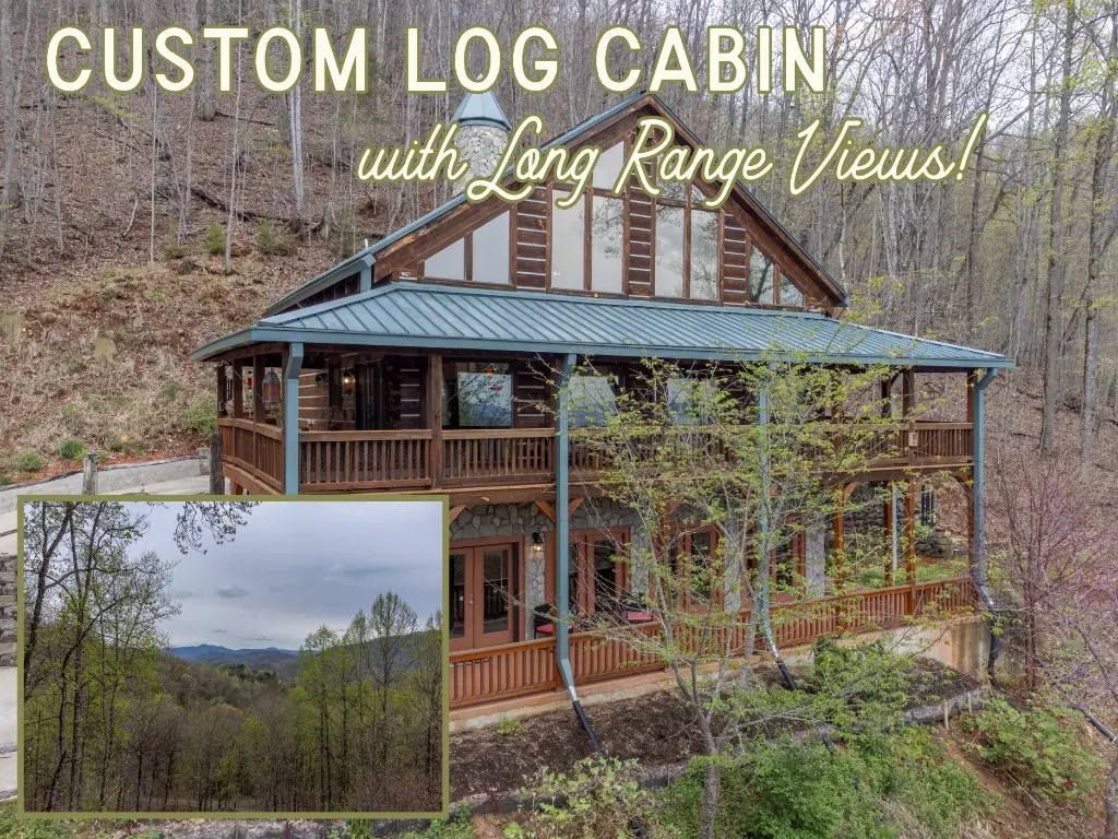 Escape to your mountain dreams in this stunning log home nestled on 2.45 acres of serene landscape. Offering breathtaking views, this meticulously maintained property presents an opportunity for both relaxation and adventure. As you step inside, you're greeted by the warmth of beautiful wood walls, vaulted & beamed ceilings & a fabulous wall of windows that flood the home w/natural light. The cozy kitchen is updated w/leathered granite, attractive custom cabinetry & a convenient laundry room, plus large pantry closet. The main floor boasts 2 BRs, full bath and a striking 2-story stone, gas log fireplace providing warmth & ambiance for the main & upper levels. The loft area primary suite features the 2nd fireplace, private bath, walk-in closet w/attic storage access & a fabulous view! Venture downstairs to discover a versatile lower level offering endless possibilities w/large family room, 2 bonus rooms, large full bath & plenty of mountain sunshine. Outdoors you'll love the huge covered deck & lower terrace, lovely landscaping & rock work, plus a walking path to a small creek on the 2nd lot. Private & peaceful, paved drive & easy access to all the area has to offer. Welcome home!