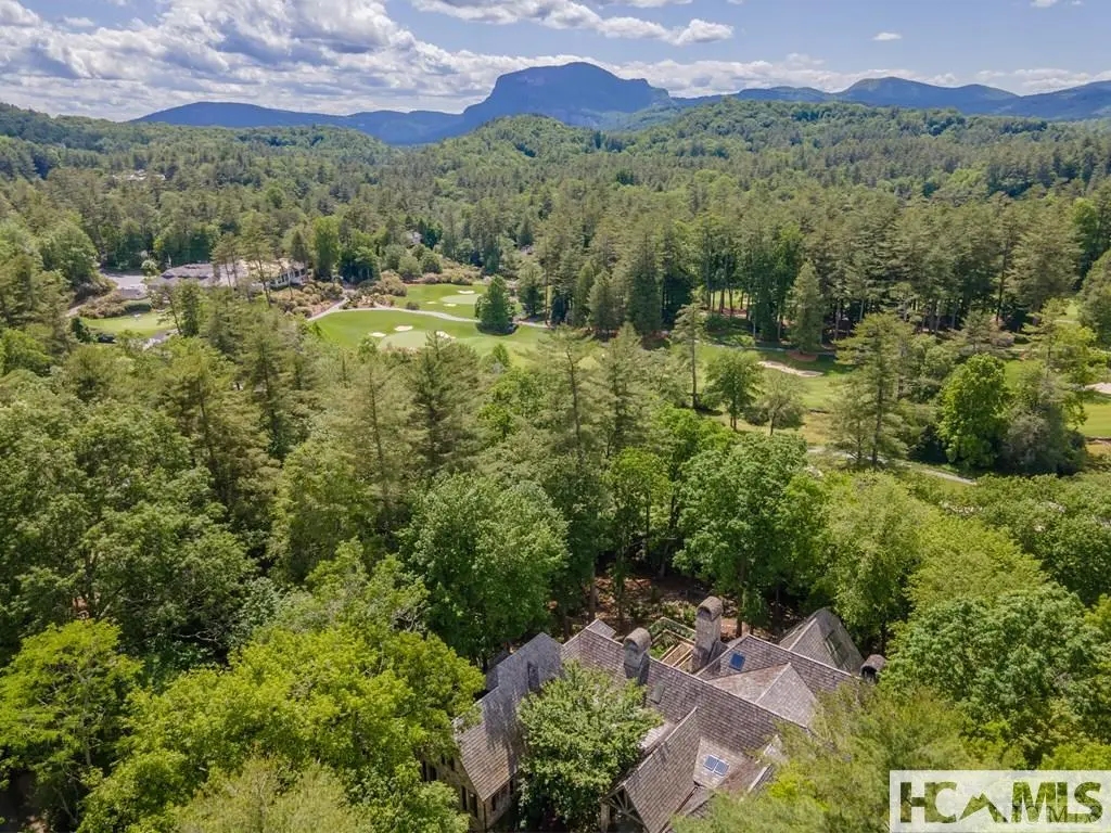 Situated on a large lot, prominently overlooking the 10th golf hole at the renowned Fazio-designed Wade Hampton Golf Club, this majestic home is surrounded by 1.2 acres of gently sloping yard and private gardens. Flanked by native stone detailing and clad with newly installed cedar shingles, the traditional mountain home has high ceilings and generously proportioned rooms. One is greeted by lovely gardens on both sides of the front entry, then "invited" into the home by the wainscoted, wallpapered Grand Hallway with sconce lighting. Opposite each other in the massive Great Room, giant stone fireplaces create the opportunity for two entertainment areas. New skylights have multiplied the light in this impressive space and were added when the cedar shake roof was replaced in the last few years. A large, newly updated Chef's Kitchen is around the corner, with its own Breakfast Room and the best Butler's Pantry imaginable! The Den, Primary Suite with multiple closets, stone fireplace and reading area, and three Guest Bedrooms are accessed from the sunlit Gallery. The Laundry, wine/Mudroom and Powder Room finish off the main level of the home The fifth Bedroom Suite is privately located upstairs at the other end of the gallery. There is a lovely screened Carolina Room with grill and fireplace near the kitchen and off the great room is a large covered stone terrace with mountain and golf views. The terrace level of the home offers a large Game Room, two bathrooms and a sleeping area for staff or overflow guests. This property was one of the early venues for the Joy Garden Tour, and the current owners have restored the gardens to their former glory, as well as adding many of their own touches around every turn.