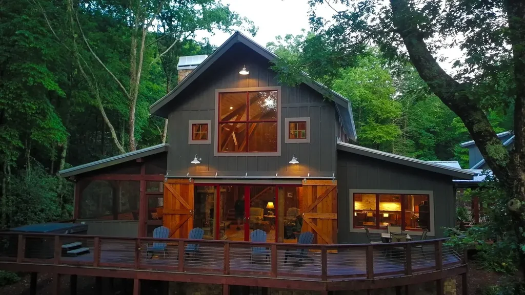 LODGE @ LAKE OSAGE PRIVATE GATED ENTRANCE, TIMBER FRAME HOME, TREX DECKS, PRISTINE LAKE, WHITE PINE CEILINGS, PECKY CYPRESS WALLS, RED OAK FLOORS, SPA-LIKE MASTER BATH, CHEF’S KITCHEN ELEVATION: The elevation at the house is 3760. The Elevation on Main Street in Highlands is 3790 - ONLY a 30' difference. This high elevation property enjoys summer temperatures that range from the low 60s at night, and typically, high 70’s during the day. LOCATION: Conveniently located on the Atlanta side of Highlands and just a short 12-minute drive to enjoy Highlands’ premiere shopping & dining! The Lodge @ Lake Osage is a legacy property that offers a perfect blend of rustic charm & luxurious living. Nestled in the scenic community of Rocky Knob & surrounded by National Forest this expansive +/- 5-acre estate combines stunning views of Lake Osage & Rocky Knob Mtn -PRIVATE gated entrance -Timber frame home -Douglas Fir beams -Red Oak floors from an old barn -Pecky cypress walls & white pine ceilings -JELD-WEN windows and doors throughout - Majestic 25-foot custom stone wood-burning fireplace -Chef’s kitchen features: Alder wood cabinets, leathered Indian marble countertops - Appliances from Wolf, Bosch & ASKO - A spa-like master bath featuring a hammered copper soaking tub - 900-square-foot guest apartment over the carport –Trex decks -A screened porch with a stone fireplace & panoramic views of the lake and rock- faced mountain. -Fire-pit area perfect for gathering with loved ones -Parking for 12 or more cars - perfect for large family get-togethers Whether you enjoy kayaking, swimming, fishing or hiking, this private luxurious mountain retreat offers an upscale experience in a serene natural setting.