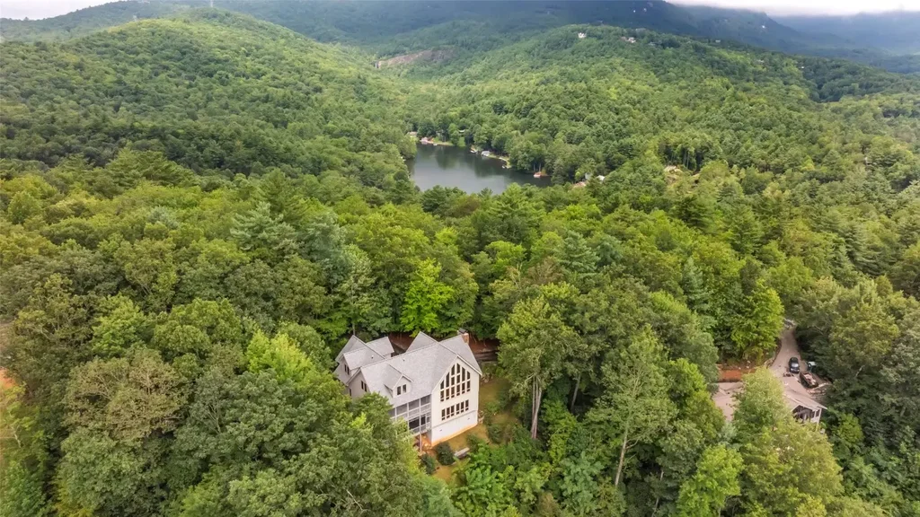 Spacious 4 BR, 4.5 BA custom home with panoramic views of Lake Toxaway, the Blue Ridge Parkway, and surrounding mountains. Conveniently located on Lakeside Mountain, this stunning home features a new roof, extensive wood paneling, heart pine floors, two massive stone fireplaces, an open floor plan with vaulted ceilings, two large covered, screened porches, covered parking, and an expansive circular drive. This is the perfect full-time home or vacation getaway in beautiful Lake Toxaway.