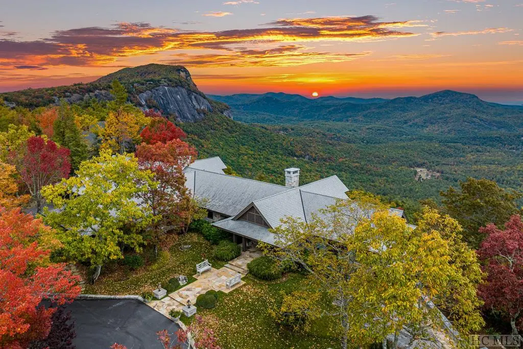 Welcome to Mullach, a magnificent estate perched at the summit of a mountain in Western North Carolina inside the secure gates of a country club. This luxurious home offers breathtaking 360-degree views of the surrounding mountains, immersing guests in the natural beauty that surrounds them. Every detail of Mullach has been meticulously crafted with impeccable quality. From the minute you step inside, you are greeted with a sense of elegance and sophistication. The main house and guest house have been completely updated, ensuring that guests enjoy modern amenities and comforts. Whether you are relaxing in the spacious living areas, baking in the gourmet kitchen, or unwinding in the luxurious bedrooms, Mullach offers a truly unforgettable experience. The estate's grandeur extends outdoors, where you can soak in the panoramic vistas from the expansive decks. The main home is one-level with every luxury provided for an elegant lifestyle. The moment you open the door, the drop-dead view greets you across the sophisticated living room and foyer defined with custom wood columns. The dining room is to the left on the way to the gourmet kitchen, breakfast nook and family room grounded by an impressive fireplace flanked by paneled walls that open to a wet bar on the left side and to the hallway leading to the primary suite on the right. An office and pantry lead to the 4 car and 2 golf cart garages. The media room with surround sound and theatre screen with coffered ceilings and acoustical walls is on the way to the primary bedroom. The sunroom surrounded by windows allow you to enjoy the view while reading a book or playing bridge. The tranquil primary bedroom provides another vantage point to be inspired by the sixty-mile view. The primary bath is unparallel in quality and luxury. The nearby office is quiet and private. The guest suite in the main and guest house welcome family and friends. This special estate is truly a unique find in any mountain area.